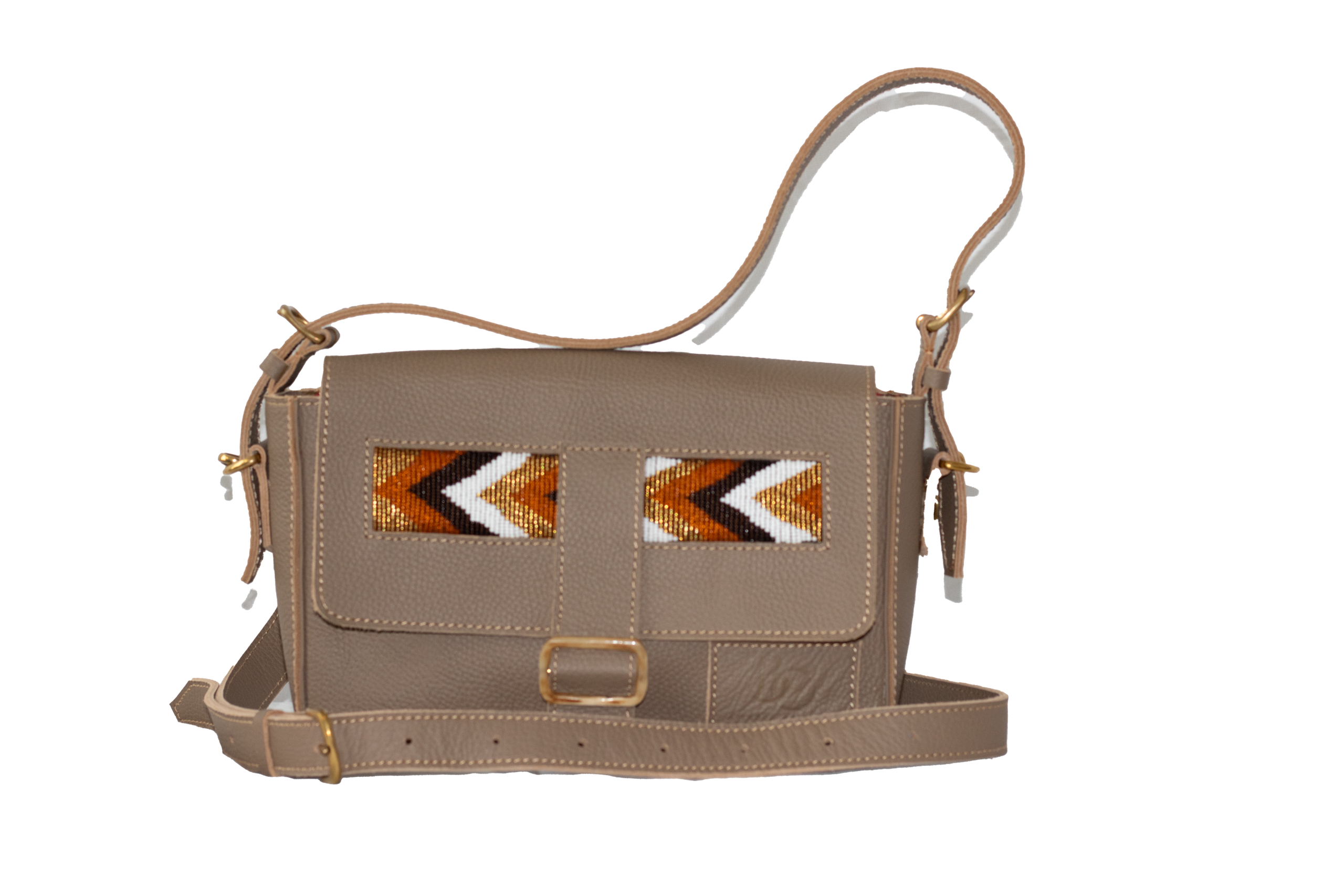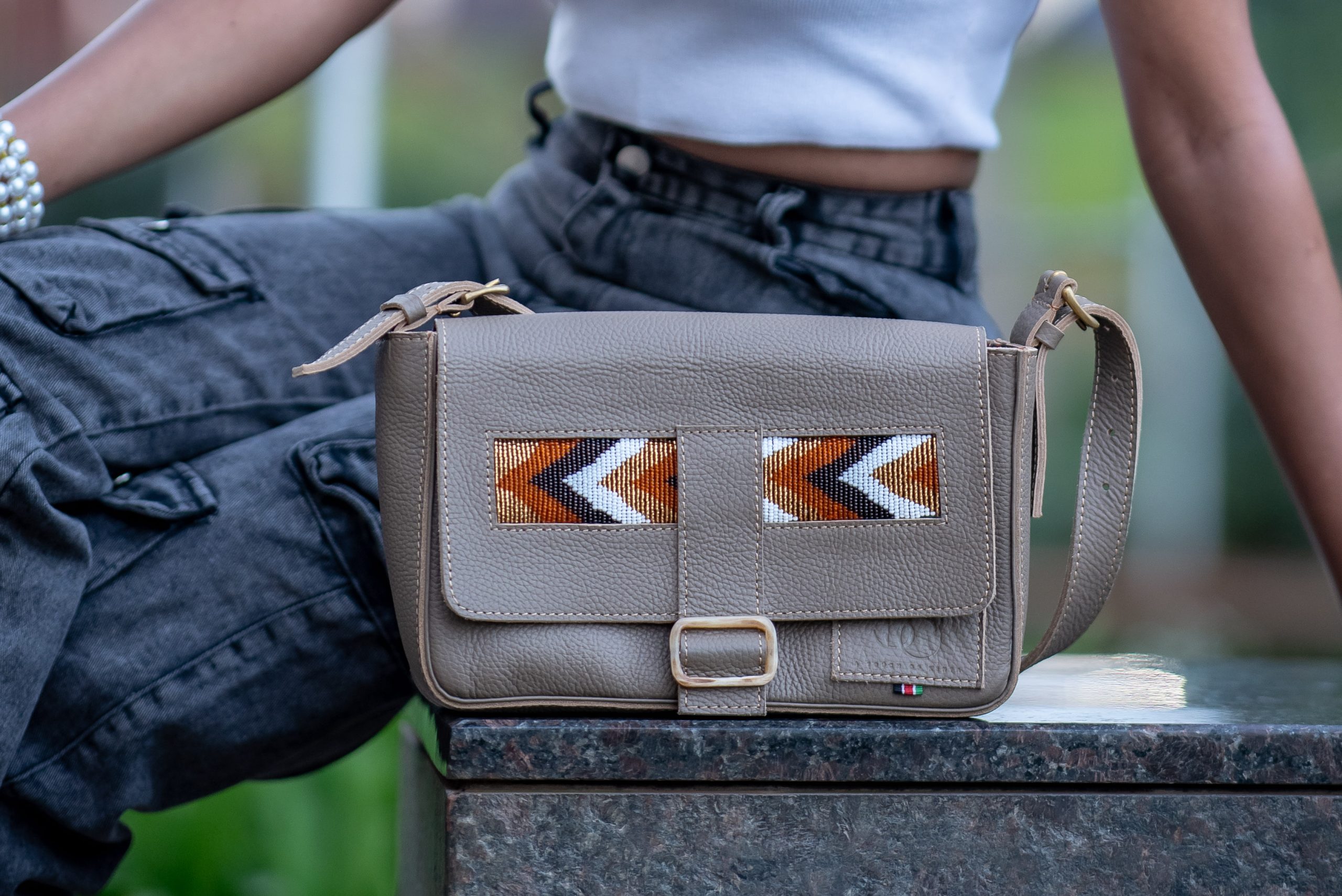 Beaded Leather Baquette Bag